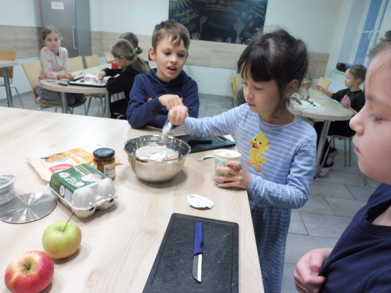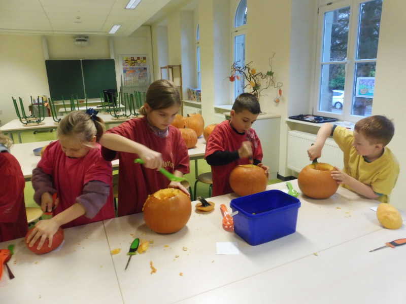 In den Herbstferien gab es ein großartiges Programm mit vielen Angeboten für unsere Hortkinder. Die erste Ferienwoche startete mit einem kreativen Specksteinangebot und einem herbstlichen Waldtag. Am Dienstag fand der traditionelle Pirnaer Fußballcup in der Turnhalle statt, hier gewannen unsere Kinder wiederholt den begehrten Pokal. Für Entspannung sorgte im Gegenzug ein Angebot mit Fantasiereisen und Musik. In unserer Kinderküche wurden leckere Dinge hergestellt, so gab es zum Beispiel verschiedene Quarkspeisen, Zimt- und Pizzaschnecken sowie herzhafte und süße Teilchen aus Blätterteig. Natürlich durfte das beliebte Kürbisschnitzen und eine Tauschkartenbörse nicht fehlen.