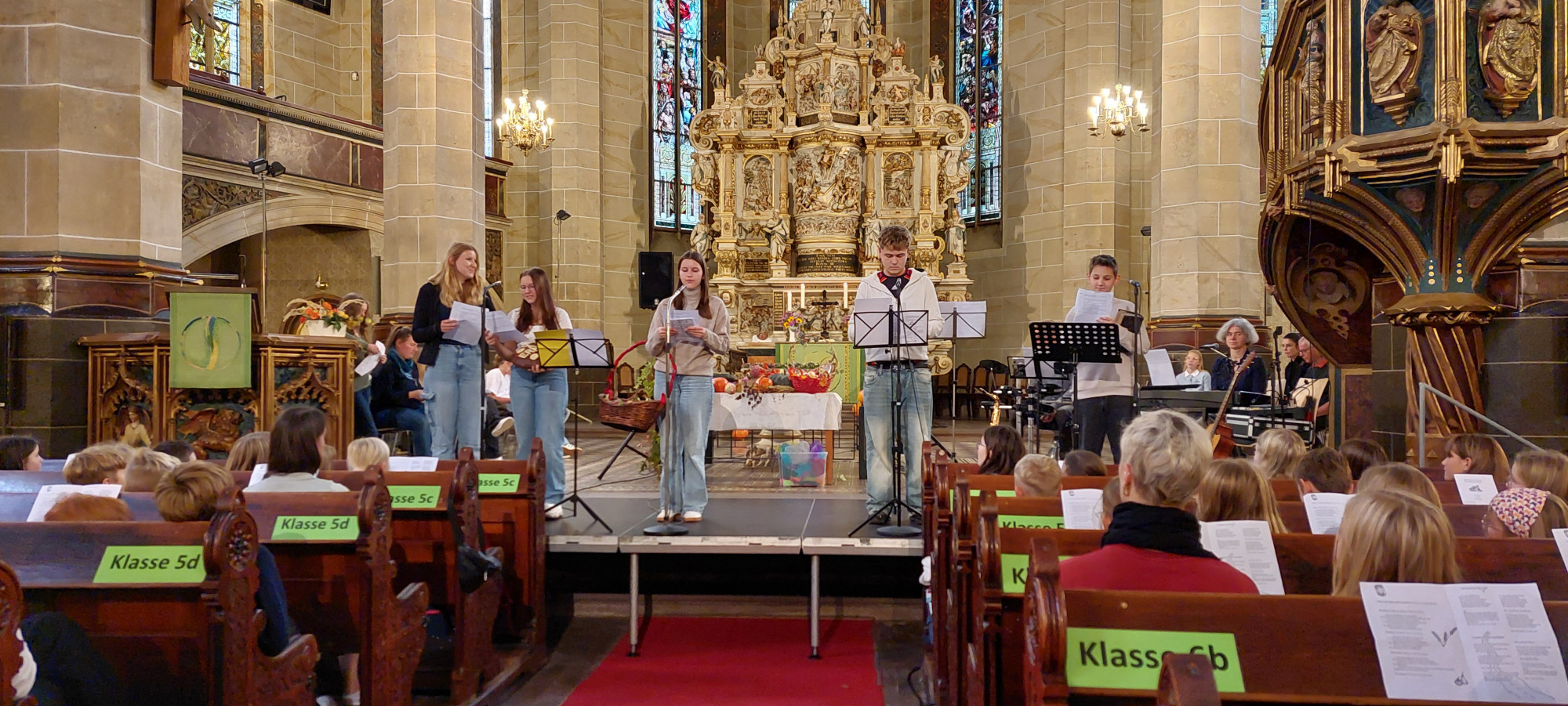Mit einem gemeinsamen Anfangsgottesdienst begann am 11. August 2025 das neue Schuljahr am Evangelischen Schulzentrum. Schülerinnen und Schüler, Lehrkräfte und Eltern kamen zusammen, um sich auf die kommenden Monate einzustimmen.